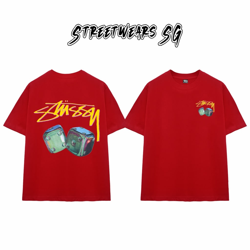 - Thiết kế: Mặt trước in nhỏ họa tiết cặp xúc xắc phối màu neon xanh – tím đi kèm logo Stu vàng nổi bật. Mặt sau là hình xúc xắc 3D neon kích thước lớn kết hợp chữ ký Stu màu vàng chói, tạo điểm nhấn mạnh mẽ, đậm chất streetwear cá tính.