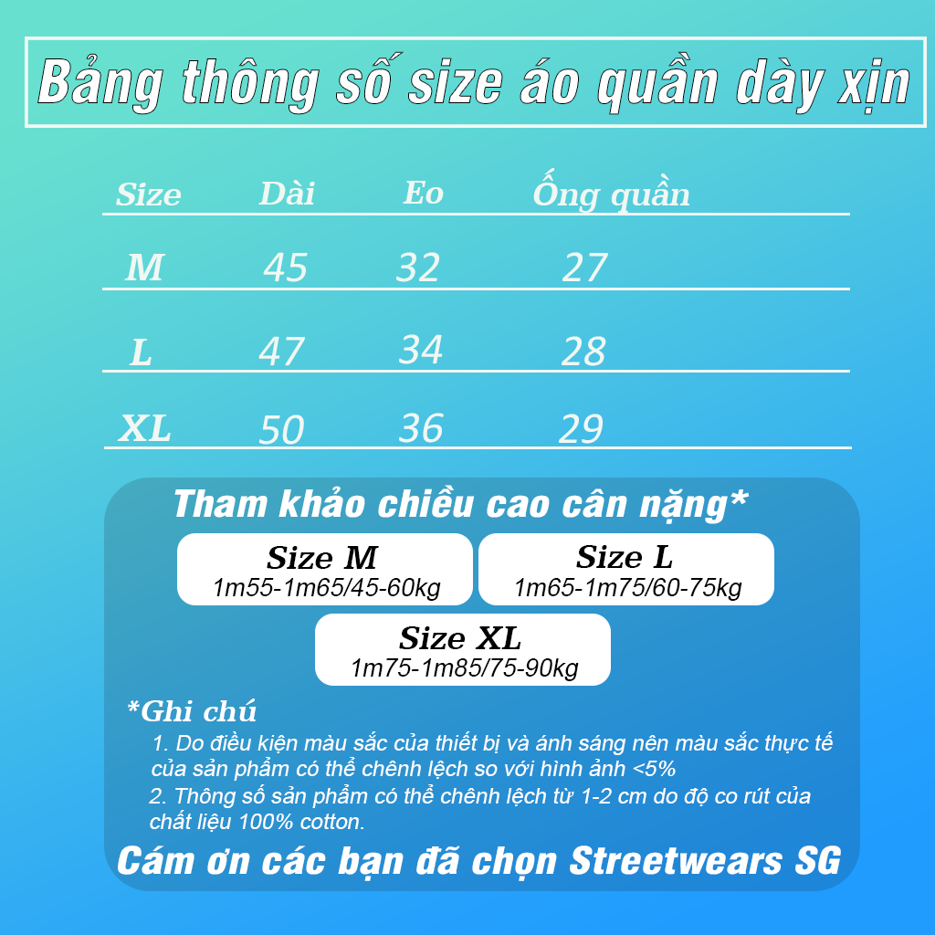 - Chất liệu: Thun dày xịn cao cấp, thấm hút mồ hôi rất tốt, thoáng mát, mềm mịn,vải xăn nặng 500g